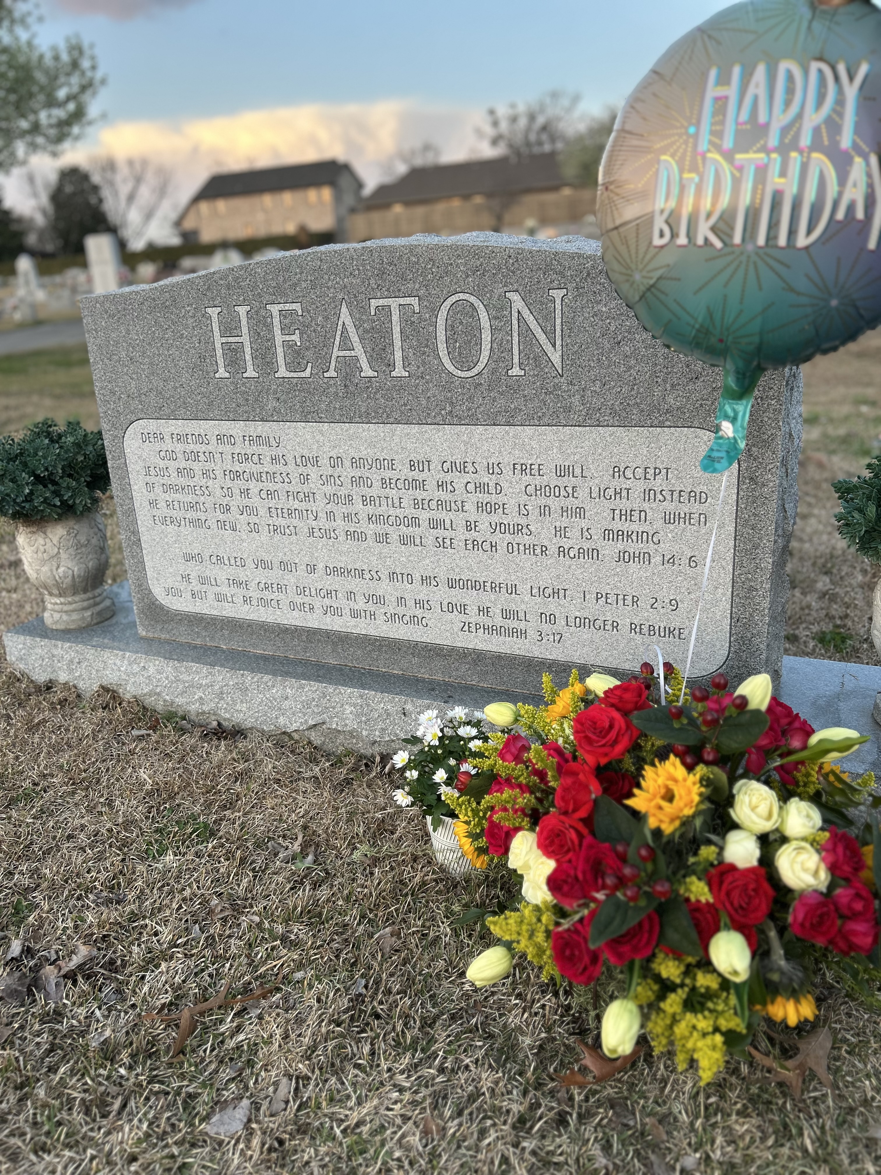 Happy "In the presence of the Lord" Birthday!!! "We are confident, I say, and willing rather to be absent from the body, and to be present with the Lord" (2 Corinthians5:8). Wow, how I miss you. We celebrated you and your birthday at Downtown Grill tonight eating one of your favorites. I told Tucker, as I knew his mouth was watering when the waitress put the plate of hot wings in front of him, you would've been drooling for sure. One day soon...I will see you again and we both will be with Jesus with all God's children living happily ever after.